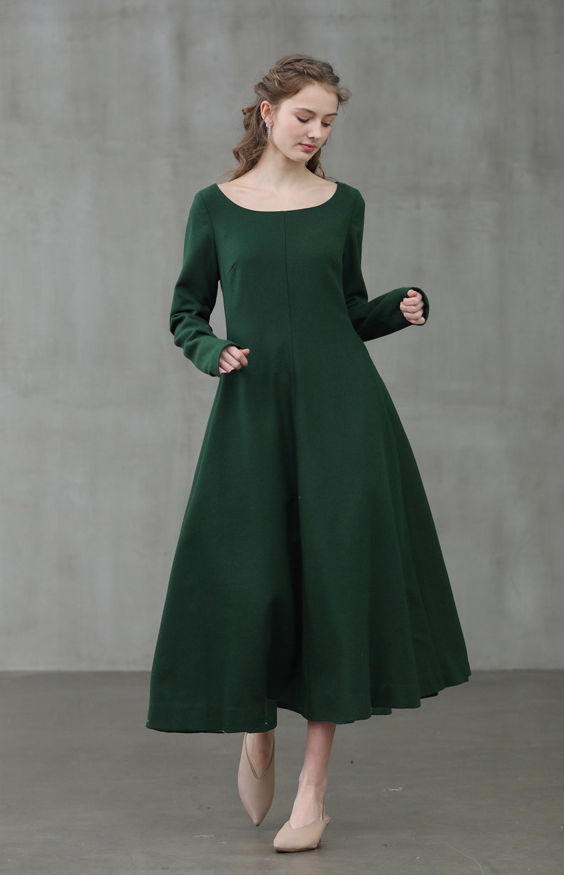 Emerald Wool Dress Green Winter Dress Cocktail Dress Etsy