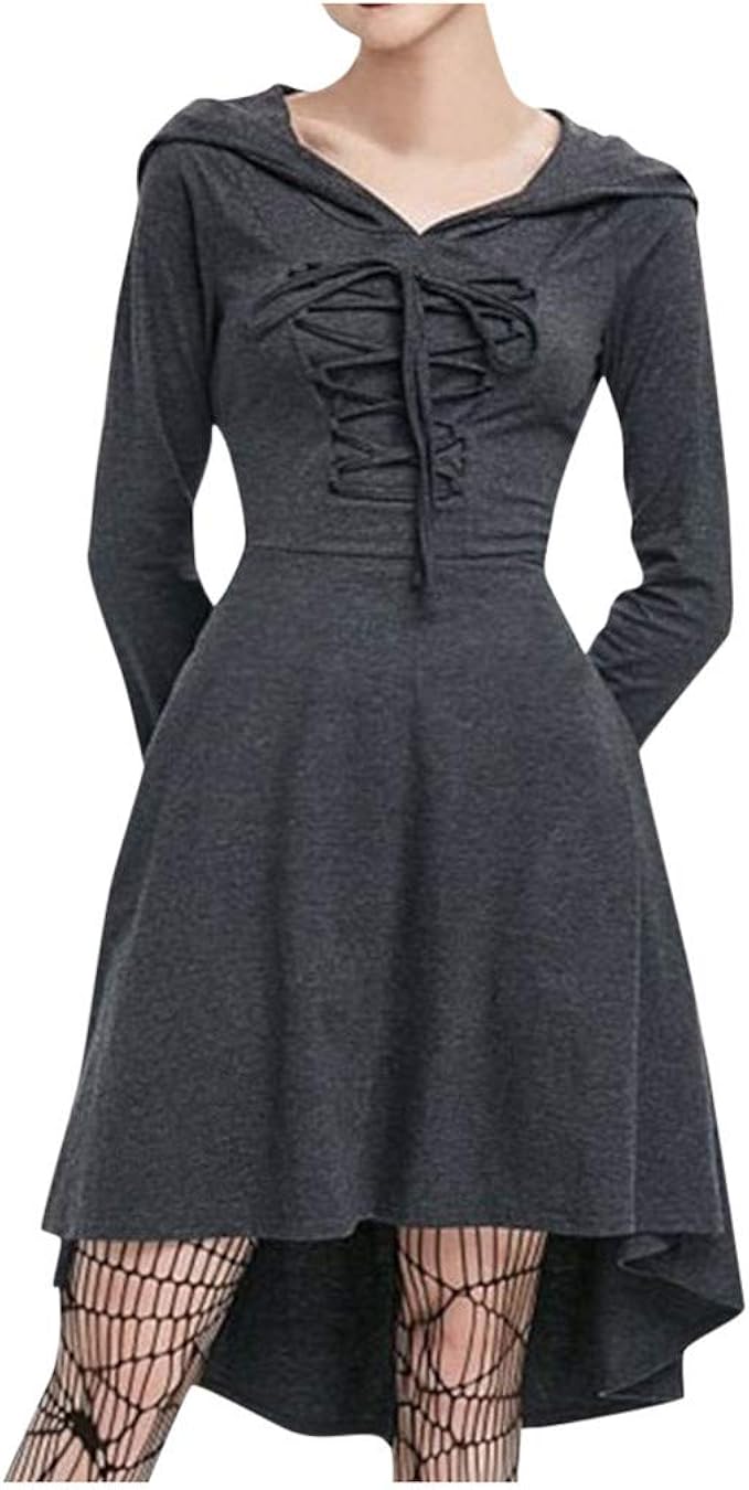 Amazon Com Beautyvan Women S Winter Long Sleeve Dresses Lace Up Bandage Hoodie Empire Waist Gothic Party Swing Tunic Dress Clothing